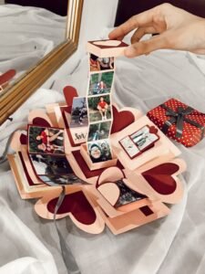 Handmade surprise boxes with photos, notes, and mini gifts inside.